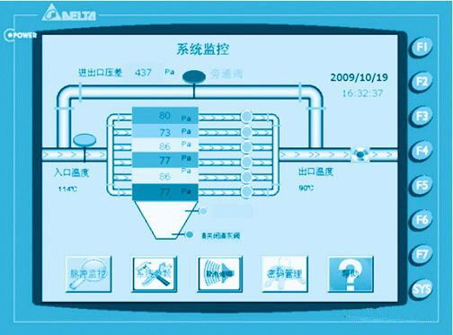 在該脈沖布袋除塵器中,本項目采用了觸摸屏來代替常規數顯儀表以及手控面板,實現系統工作參數設置與顯示以及故障報警信息的中文顯示,_大提高了系統運行的交互性以及減少了現場操作工人的負擔,使得系統的人機對話功能加強;對矩陣控制電路進行了改進,實現了對布袋除塵器大量脈沖閥的控制(由n×m個減少到n+m個),節省了大量的plc輸入/輸出點,簡化了控制線路,降低了成本。