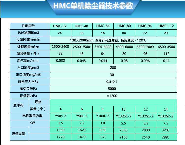 HMC系列脈沖布袋除塵器是我公司在DMC的基礎上改進的一種清灰效果好的除塵設備,比原有規格的基礎上有增加了6種規格,160、180、200、240、260、300。它采用了脈沖噴吹的清灰方式,清灰效果較強,凈化率和處理風量大,運行安全可靠,在冶金、機械、礦山、糧食、建材、化工等行業的粉塵凈化中應用廣泛。