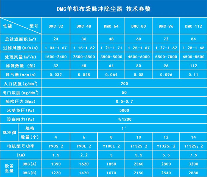 DMC系列脈沖布袋除塵器是除塵行業中應用_廣泛的一種小型除塵設備,該單機有24、32、48、112、80、112、112、120六種規格分為兩種安裝形式,可以滿足不同的安裝使用。這種小型除塵器噴吹效果好、結構簡單、安裝方便、清灰效率高,被廣泛的應用在冶金、礦山、化工、非金屬加工、煤炭等行業含塵凈化中。