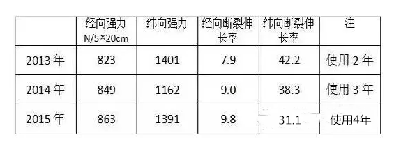 上述表明該電廠濾料經(jīng)向變化很小,且使用4年后強(qiáng)力性能基本沒有下降。