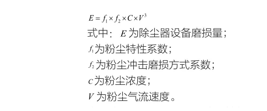 由公式可以看出,粉塵的磨損性與粉塵氣流速度的三次方成正比。當(dāng)粉塵的種類和除塵器結(jié)構(gòu)型式_時(shí),影響磨損的首要因素是粉塵氣流速度,其次是粉塵濃度。為了減輕除塵器設(shè)備的磨損問(wèn)題,可以采取了如下措施。