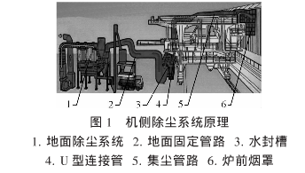 除塵系統(tǒng)主要有爐前煙罩、集塵管路、U型連接管、水封槽、地面固定管路及地面除塵系統(tǒng)組成。